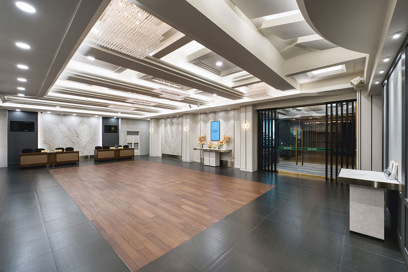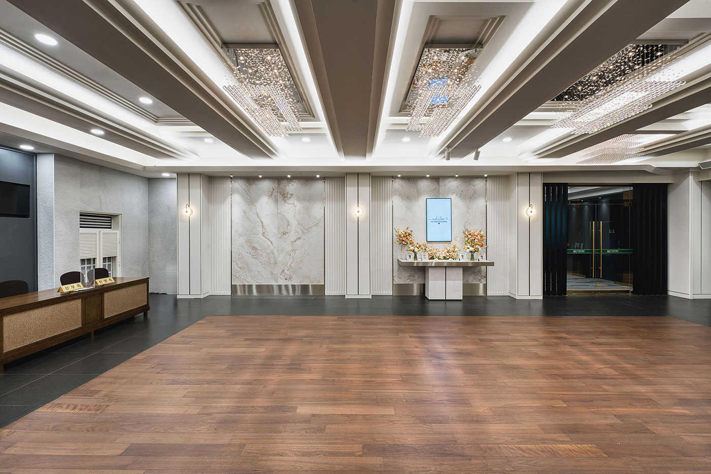 로비 라운지 Lobby Lounge 고객님의 품격을 높여 드리는 고품격 로비라운지 로비 라운지 Lobby Lounge 들어오는 순간부터 여유로움과 차분함을 주는 넓고 탁트인 로비 라운지 Description 들어오는 순간부터 여유로움과 차분함을 주어 고객님의 품격을 높여 드리는 고품격의 로비라운지에서 하객을 맞이 할 수 있도록 꾸몄습니다.축하객들을 위해 준비된 넓고 탁트인 로비와 접수대는 감각적인 인테리어와 수려한 조명, 깔끔한 디자인으로 품격있는 공간을 제공합니다. 또한 신랑신부, 하객의 동선을 고려하여 모든 시설물에 이동이 편리합니다. Floor2F 예약문의